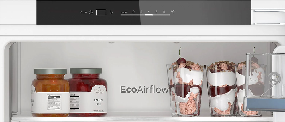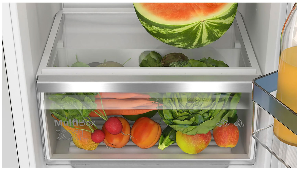 В зоне свежести температура держится на уровне 0°С, так продукты дольше остаются свежими. Подходит для свежего мяса, рыбы, фруктов, овощей.