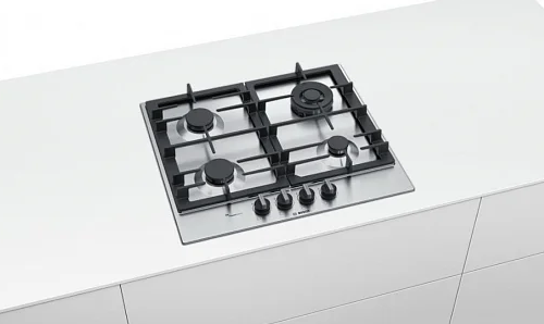 поверхность газовая, 60 см, газ на металле, 4 конфорки, решетки чугунные, нержавеющая сталь