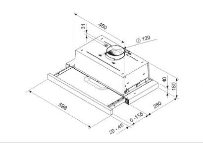 вытяжка встраиваемая телескопическая, 60 см, 384 м3/ч, нержавеющая сталь