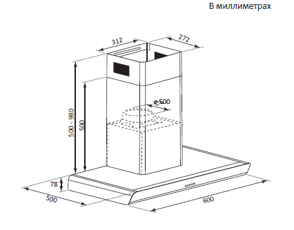 вытяжка пристенная, 60 см, 593 м3/ч, нержавеющая сталь