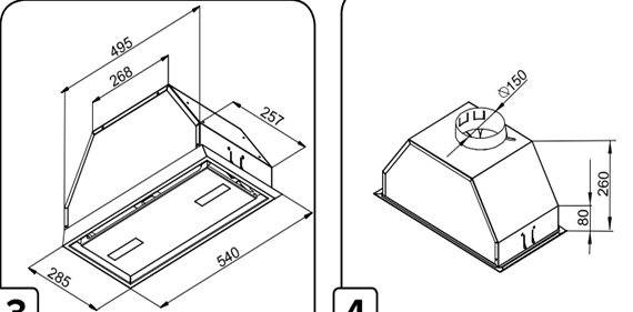 вытяжка встраиваемая в подвесной шкаф, 54 см, 640 м3/ч, черный