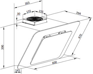 вытяжка наклонная, 60 см, 472 м3/ч, черный