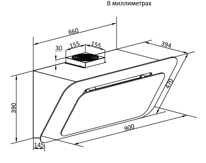 вытяжка наклонная, 90 см, 543 м3/ч, черный