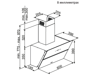 вытяжка наклонная, 60 см, 740 м3/ч, черный