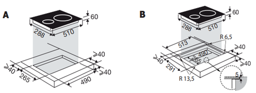 Характер огранки фаски на внешней стороне варочной панели. Металлические рамки предотвращают забивание монтажных швов крошками и пылью.