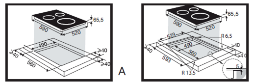 Характер огранки фаски на внешней стороне варочной панели. Металлические рамки предотвращают забивание монтажных швов крошками и пылью.
