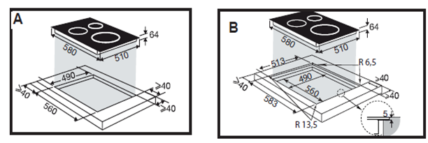 Характер огранки фаски на внешней стороне варочной панели. Металлические рамки предотвращают забивание монтажных швов крошками и пылью.