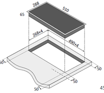 Характер огранки фаски на внешней стороне варочной панели. Металлические рамки предотвращают забивание монтажных швов крошками и пылью.