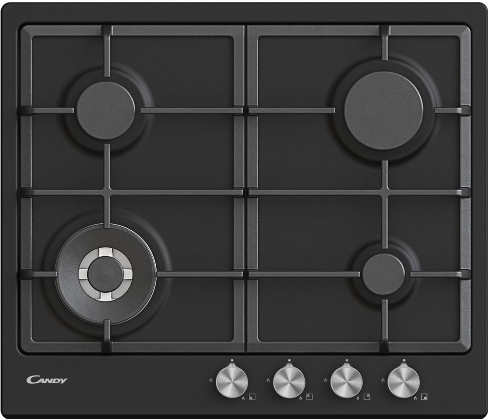 поверхность газовая, 60 см, газ на эмали, 4 конфорки, чугунные решетки, черный