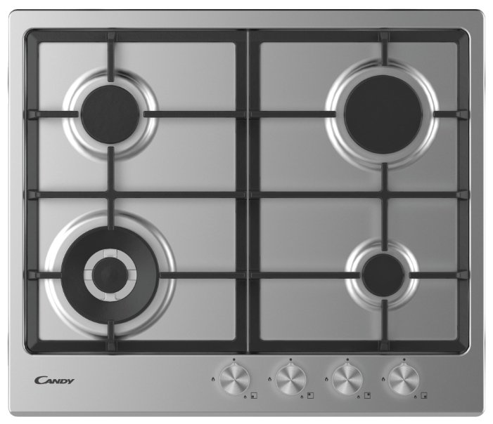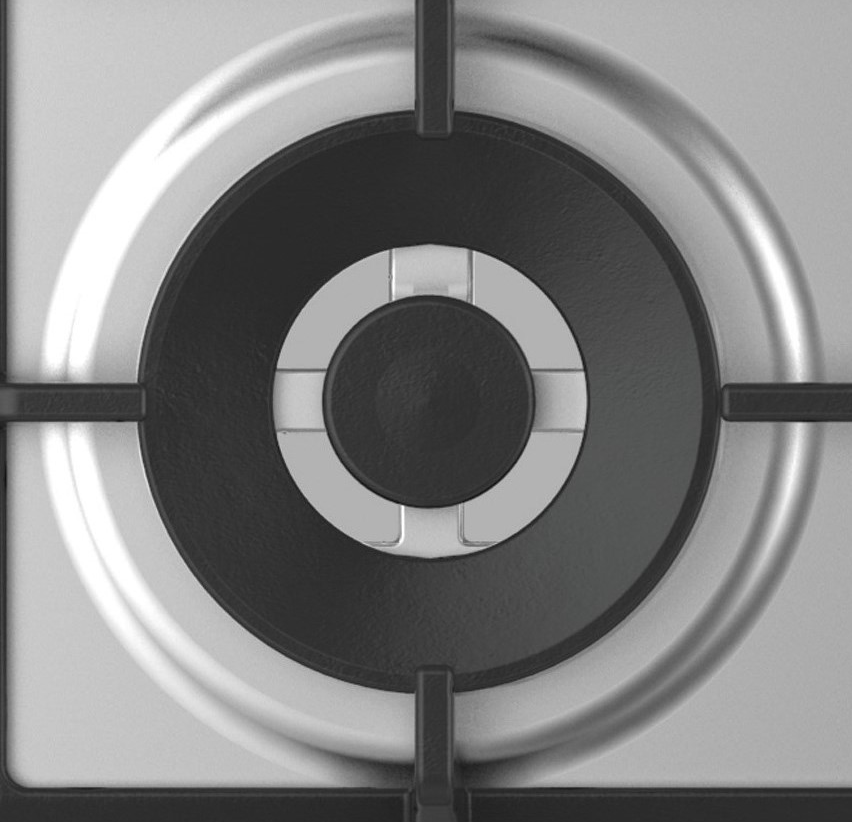 поверхность газовая, 60 см, газ на металле, 4 конфорки, чугунные решетки, нержавеющая сталь