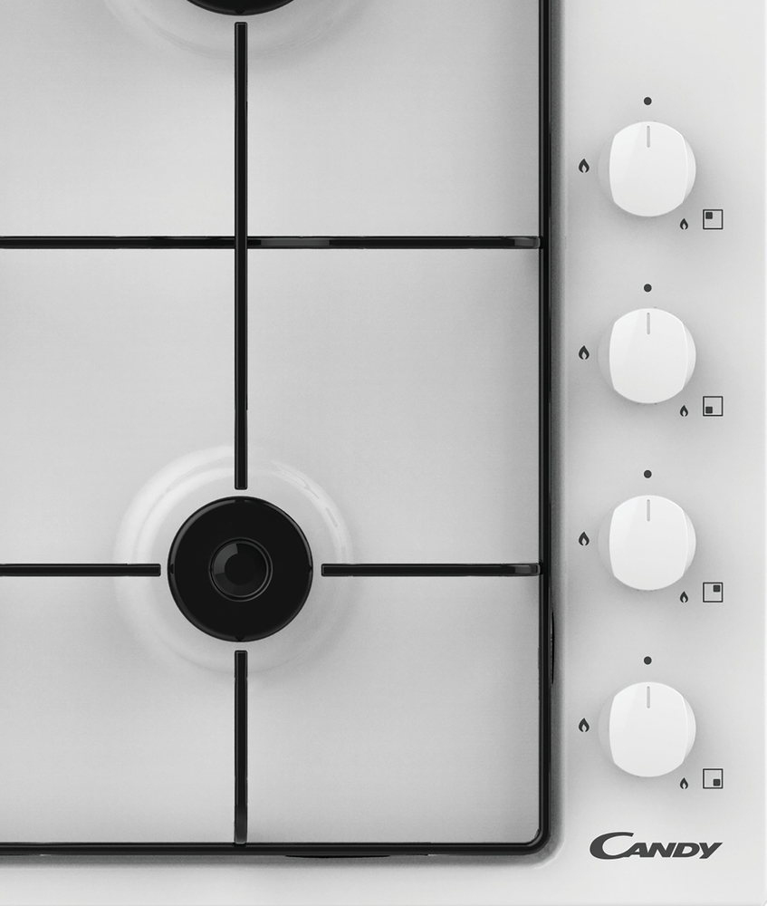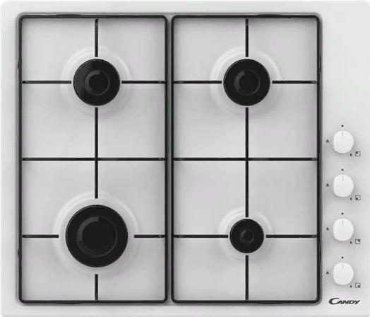 поверхность газовая, 60 см, газ на эмали, 4 конфорки, эмалированные решетки, белый