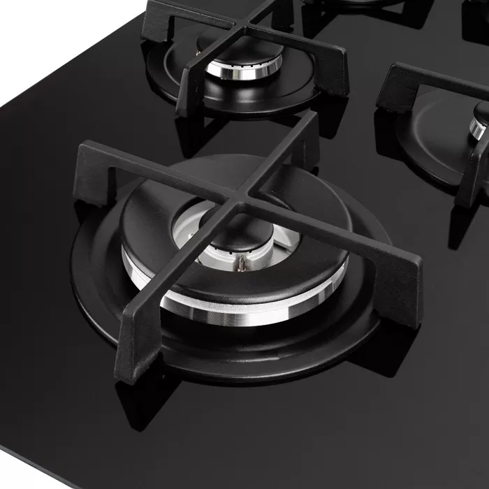 поверхность газовая, 75 см, газ на стекле, 5 конфорок, решетки чугунные, черный