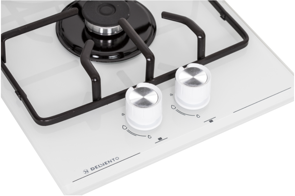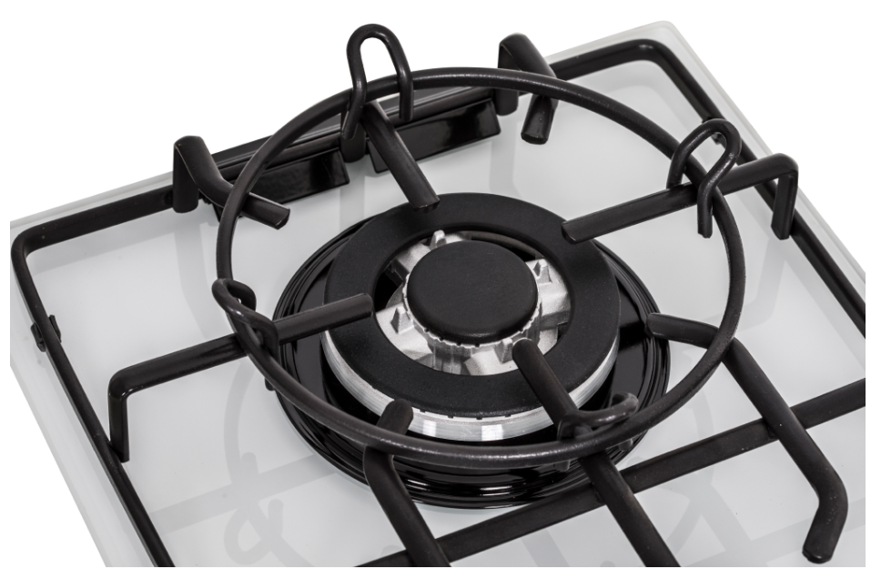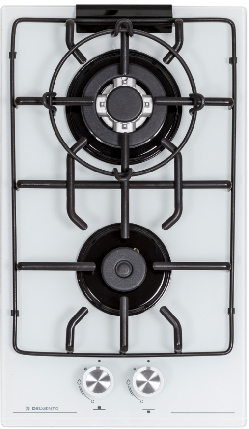 поверхность газовая, 30 см, газ на стекле, 2 конфорки, решетки чугунные, белый