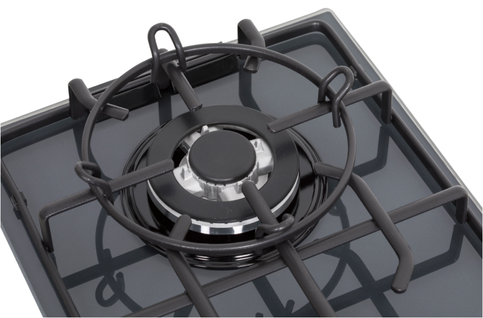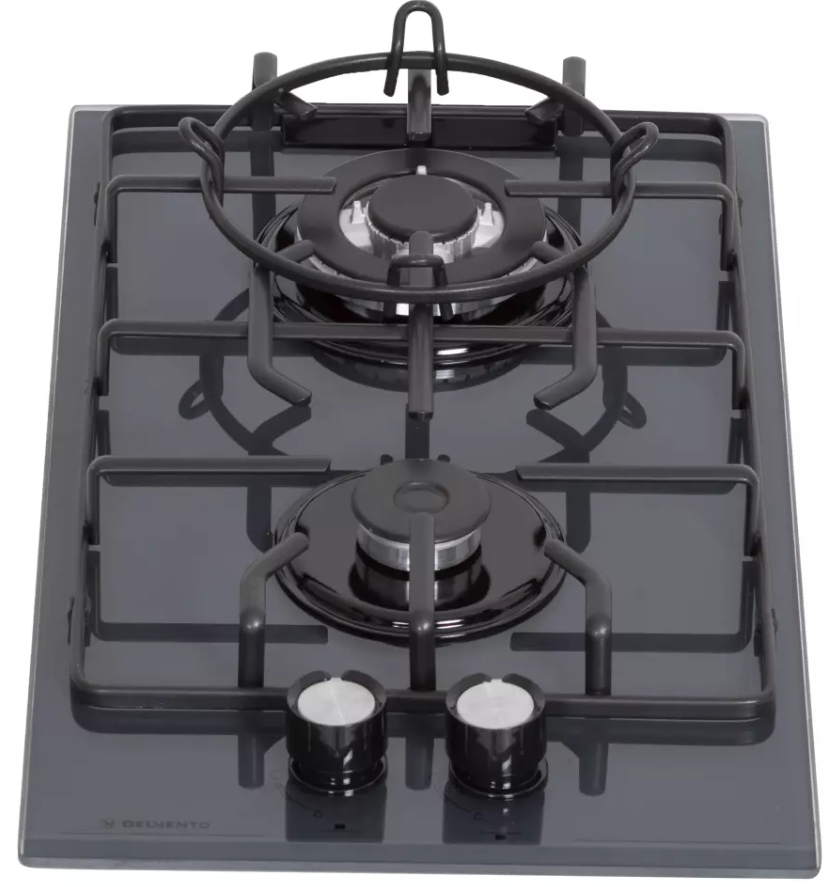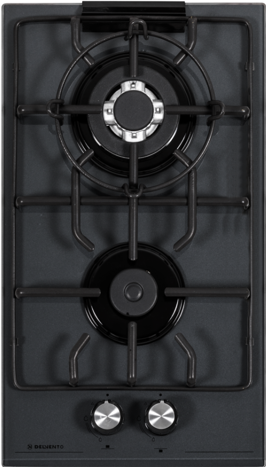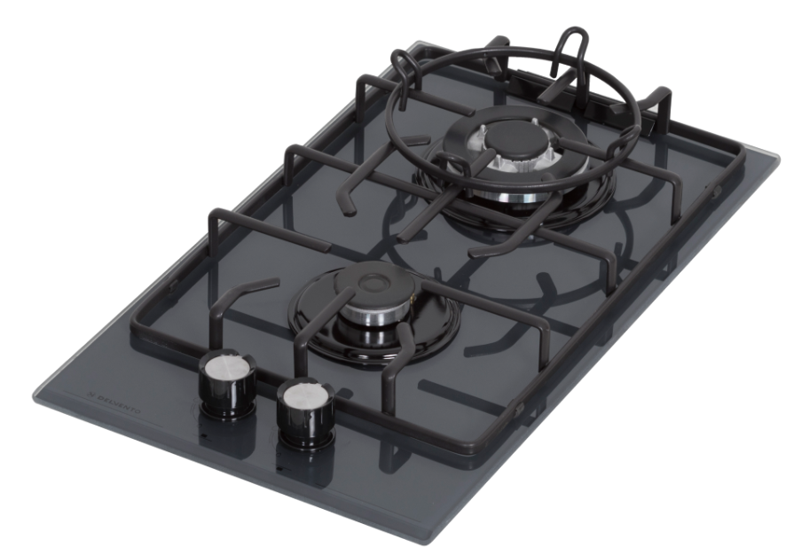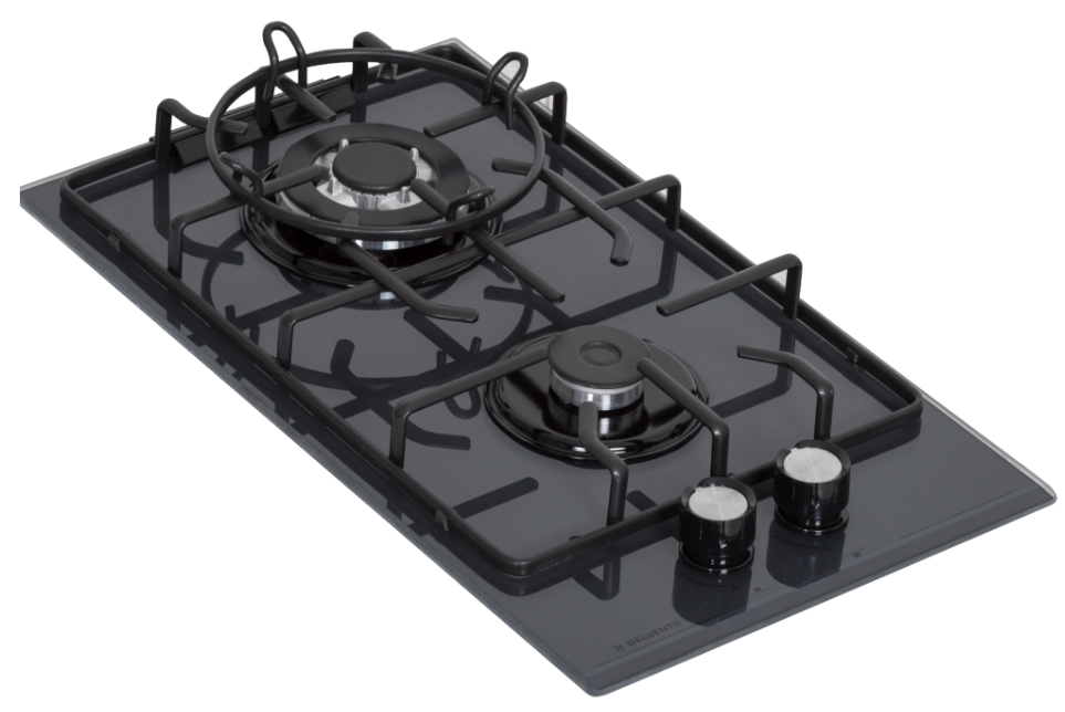 поверхность газовая, 30 см, газ на стекле, 2 конфорки, решетки чугунные, серый