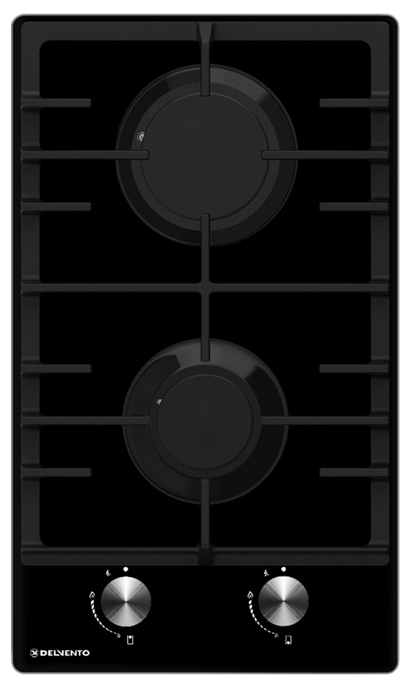 поверхность газовая, 30 см, газ на эмали, 2 конфорки, решетки чугунные, черный
