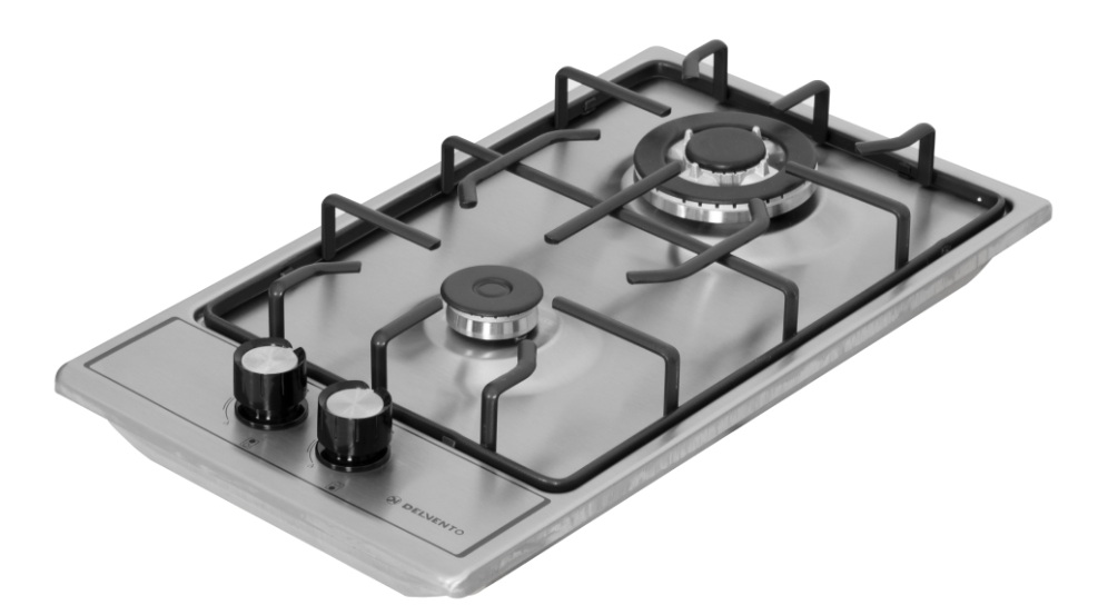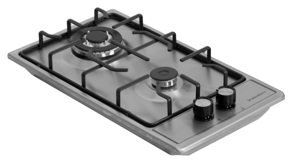 поверхность газовая, 30 см, газ на металле, 2 конфорки, решетки чугунные, нержавеющая сталь