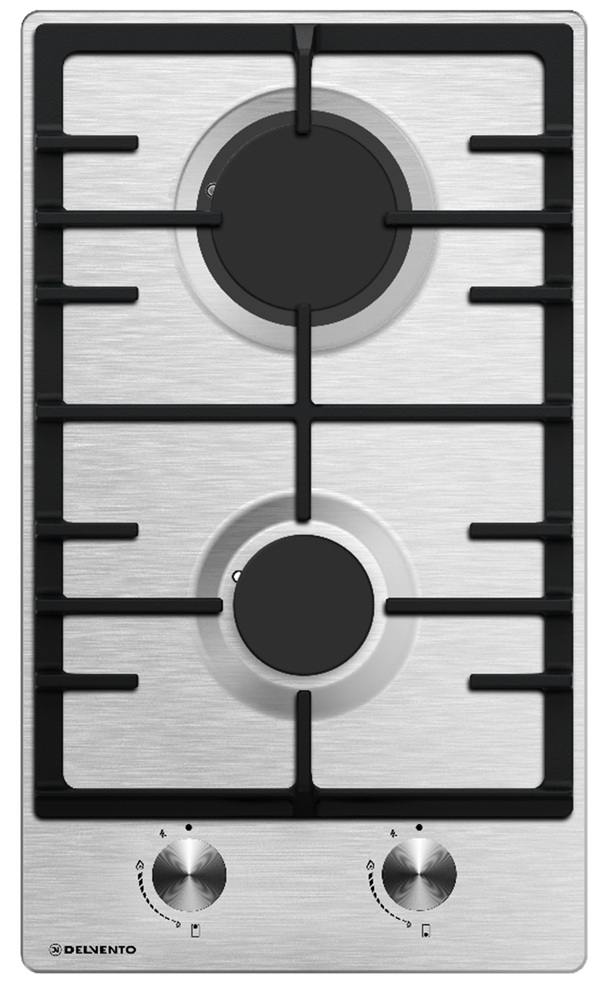 поверхность газовая, 30 см, газ на металле, 2 конфорки, решетки чугунные, нержавеющая сталь
