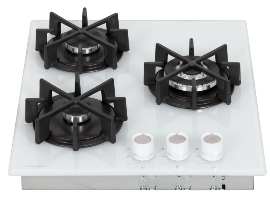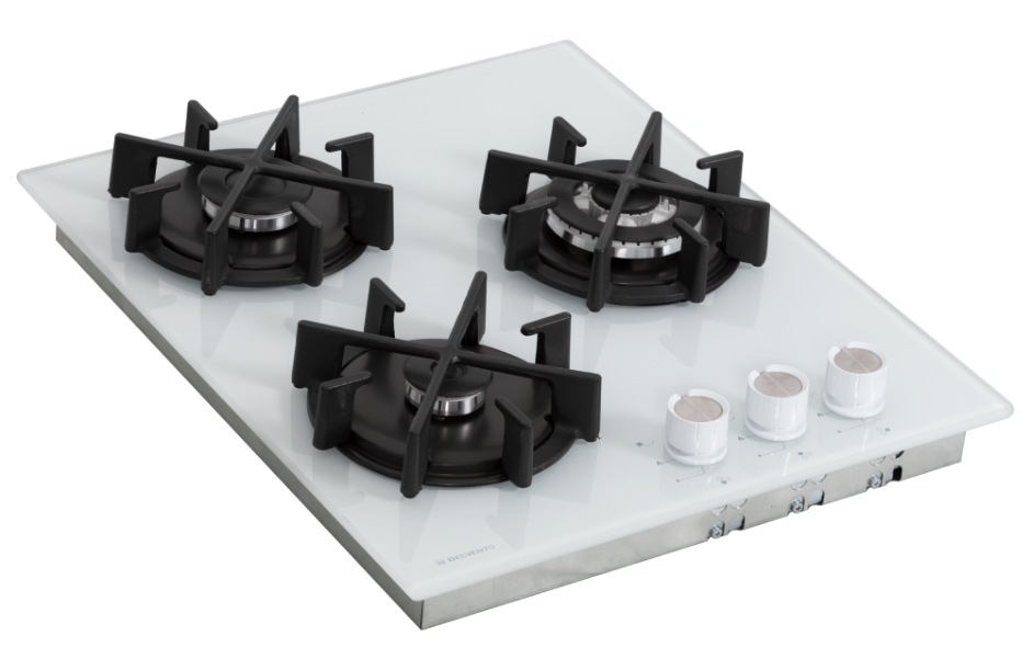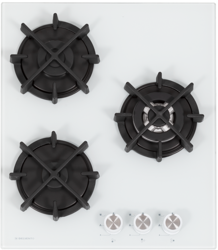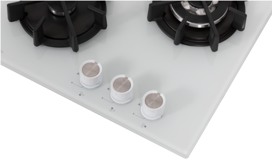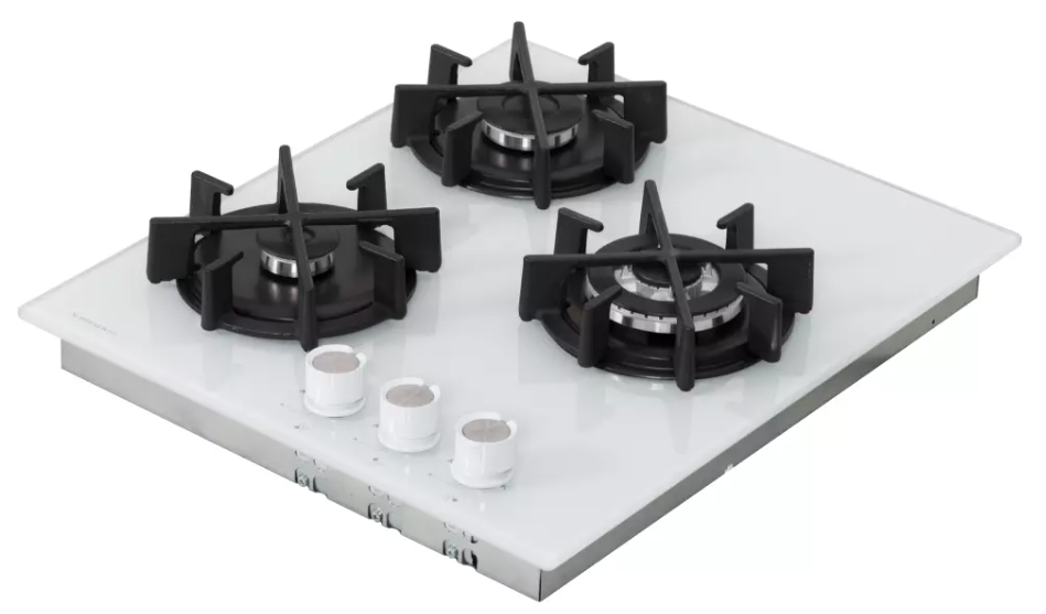 поверхность газовая, 45 см, газ на стекле, 3 конфорки, решетки чугунные, белый