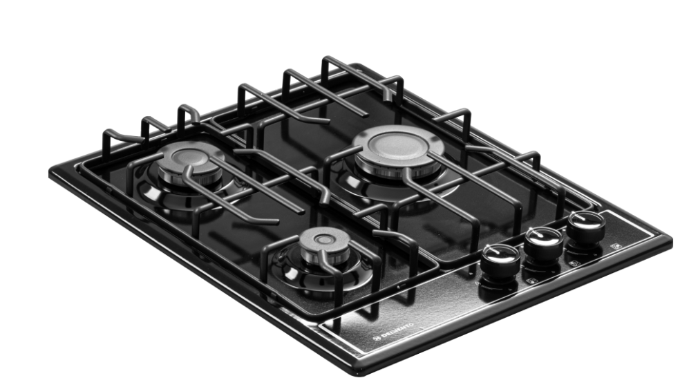 поверхность газовая, 45 см, газ на эмали, 3 конфорки, решетки эмалированные, черный