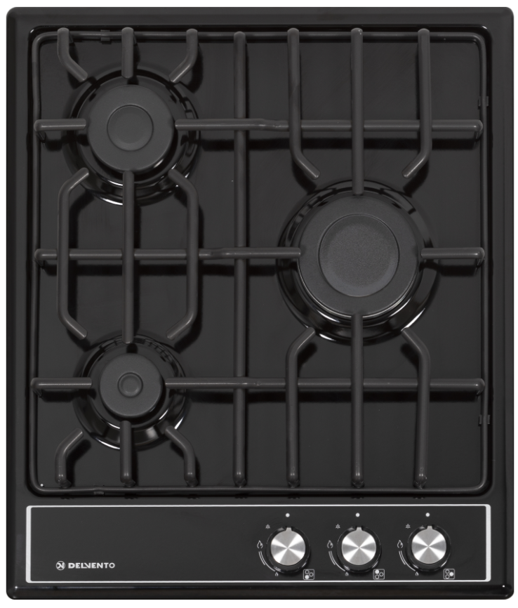 поверхность газовая, 45 см, газ на эмали, 3 конфорки, решетки эмалированные, черный