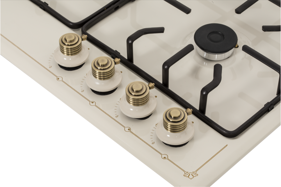 поверхность газовая, 60 см, газ на эмали, 4 конфорки, решетки чугунные, бежевый