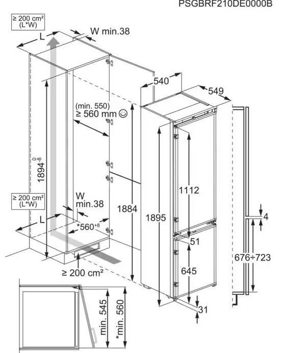 холодильник-морозильник встраиваемый, 269 л, класс энергопотребления Е, No Frost, 54,6х54,9х188,4см
