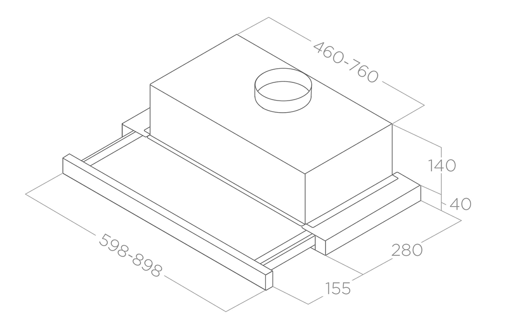 вытяжка встраиваемая телескопическая, 50 см, 650 м3/ч, нержавеющая сталь