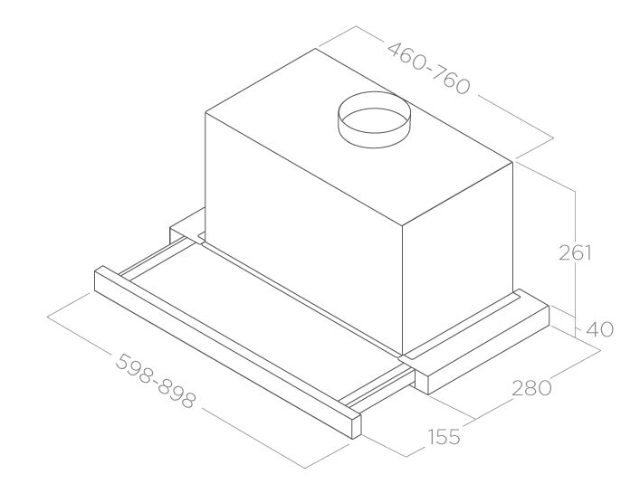 вытяжка встраиваемая телескопическая, 60 см, 900 м3/ч, нержавеющая сталь