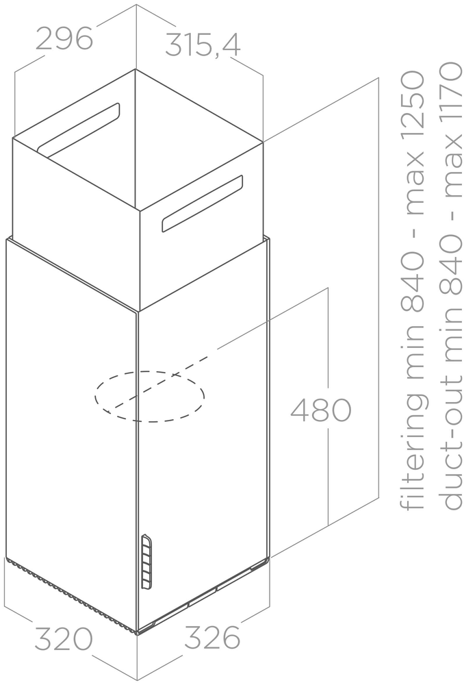 вытяжка островная, 32 см, 1200 м3/ч, нержавеющая сталь