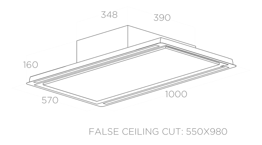 вытяжка встраиваемая в потолок, 100 см, 1500 м3/ч, белый + белое стекло