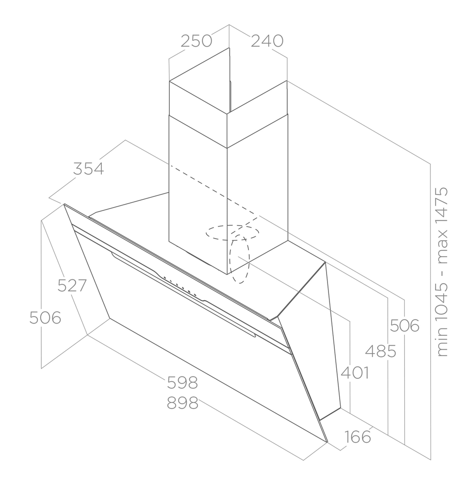 вытяжка наклонная, 60 см, 1200 м3/ч, черное стекло/нержавеющая сталь