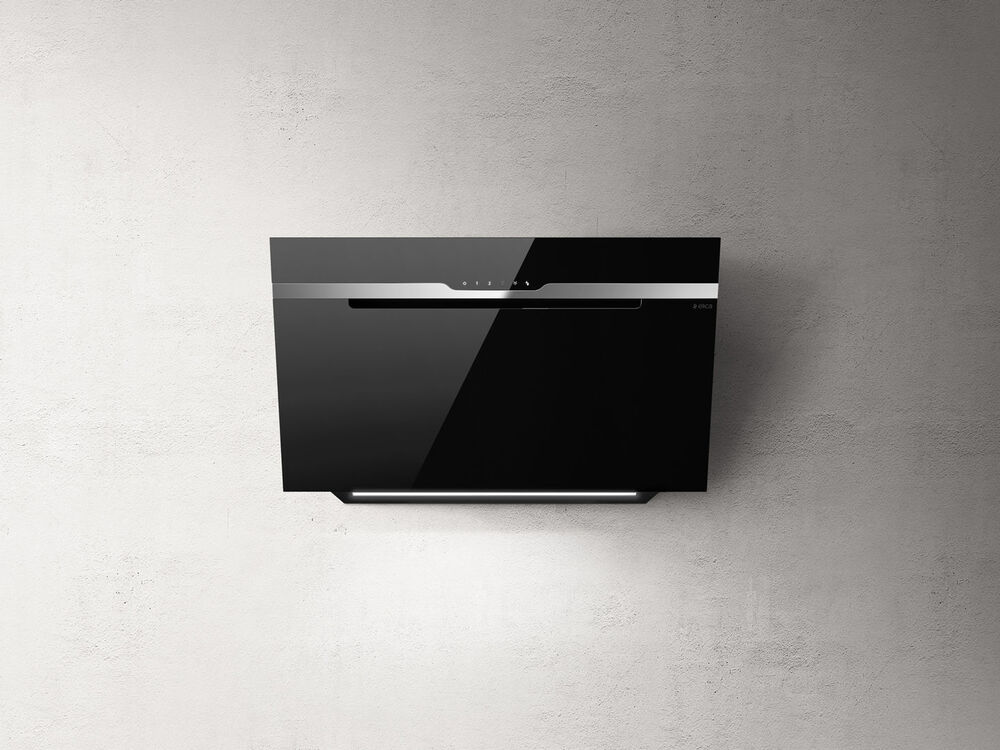 вытяжка наклонная, 90 см, 1200 м3/ч, черное стекло/нержавеющая сталь