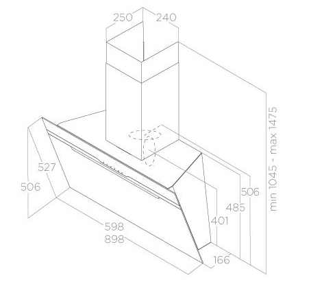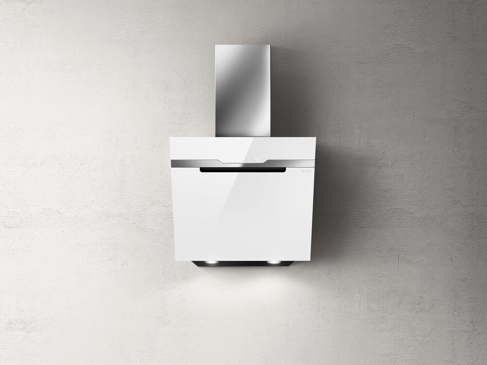 вытяжка наклонная, 60 см, 1200 м3/ч, белое стекло/нержавеющая сталь