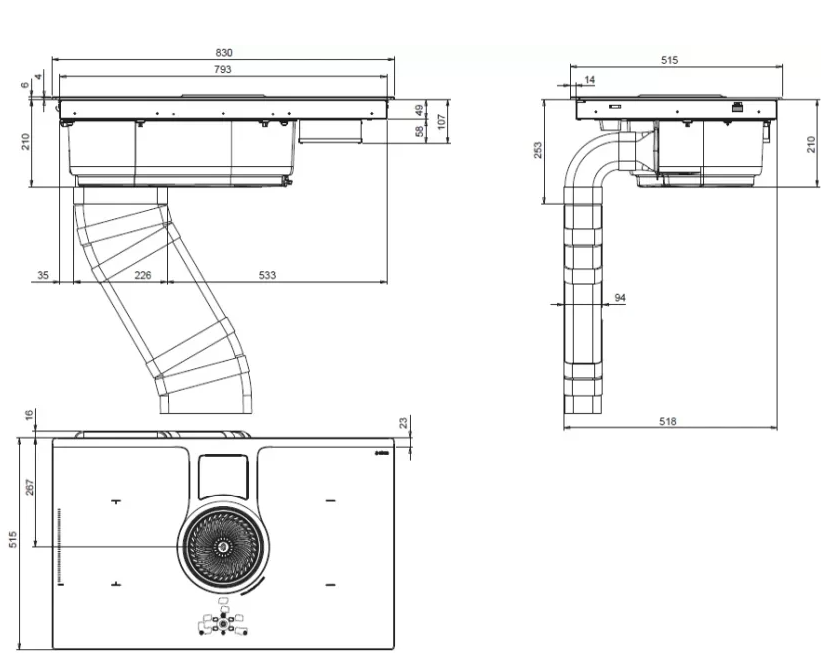 поверхность варочная стеклокерамическая индукционная с встроенной вытяжкой, 83 см, черный