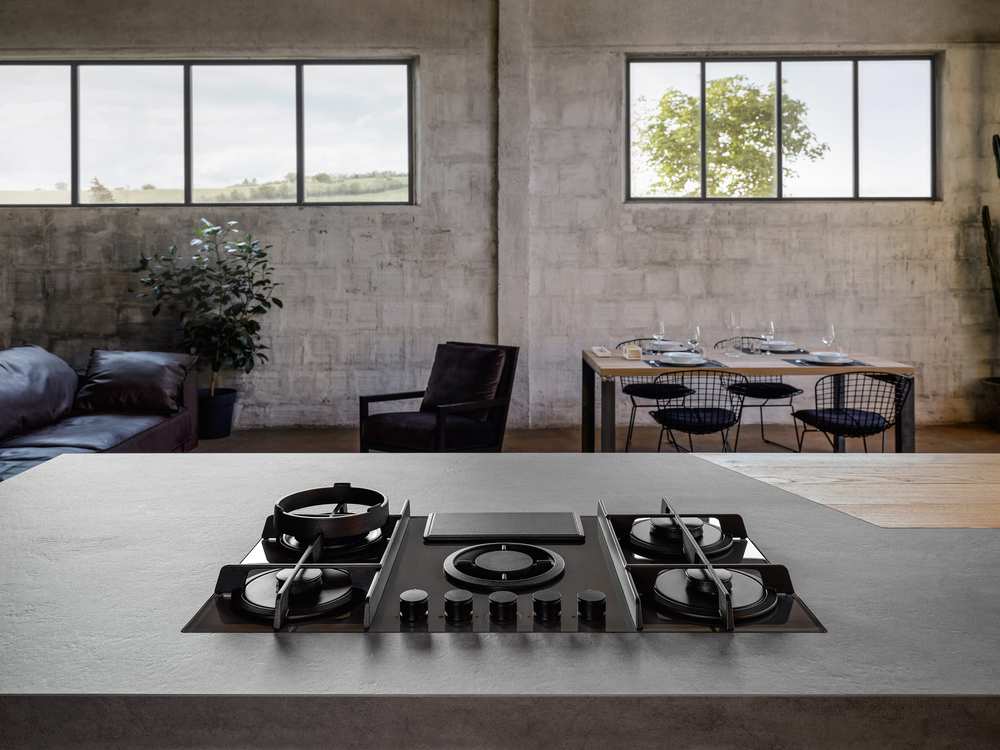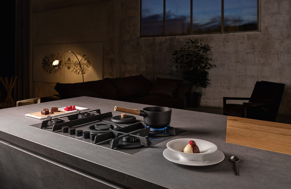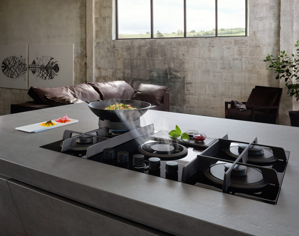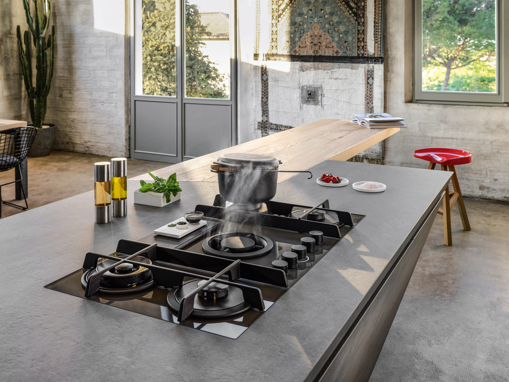 Модели со встроенной вытяжкой подходят для компактных кухонь. Запахи, пар и дым от готовки полностью поглощаются встроенной вытяжкой.