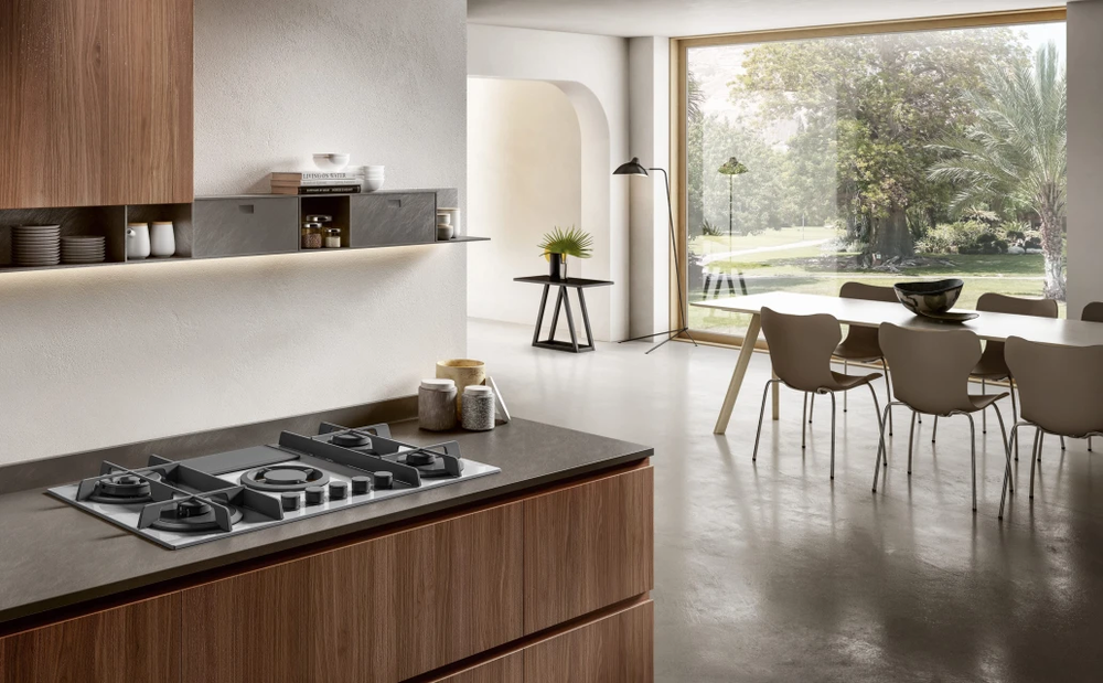 Модели со встроенной вытяжкой подходят для компактных кухонь. Запахи, пар и дым от готовки полностью поглощаются встроенной вытяжкой.