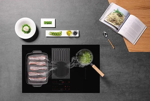 поверхность варочная стеклокерамическая индукционная с встроенной вытяжкой, 83 см, черный