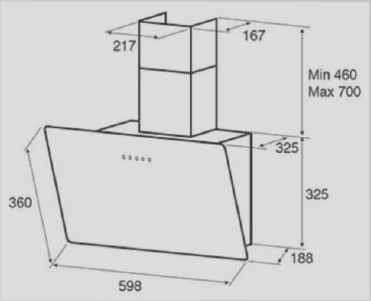вытяжка наклонная, 60 см, 700 м3/ч, черное стекло
