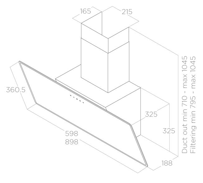 вытяжка наклонная, 60 см, 1200 м3/ч, черное стекло