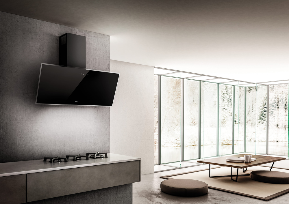вытяжка наклонная, 90 см, 1200 м3/ч, черное стекло