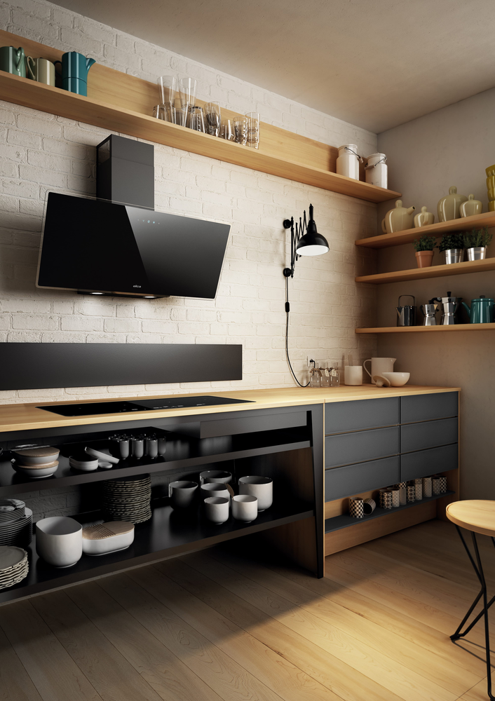 В зависимости от расположения существует несколько типов установки кухонных вытяжек: встраиваемые, стандартные, пристенные, островные и др.