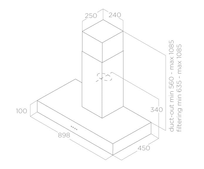 вытяжка пристенная, 90 см, 1000 м3/ч, темно-серый