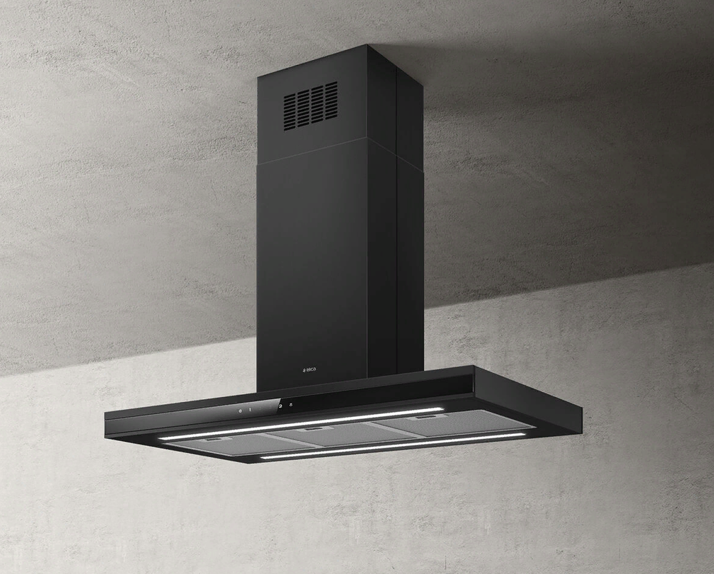 вытяжка островная, 90 см, 1300 м3/ч, черный матовый/черное стекло