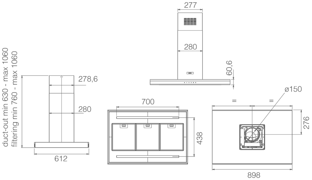 В зависимости от расположения существует несколько типов установки кухонных вытяжек: встраиваемые, стандартные, пристенные, островные и др.