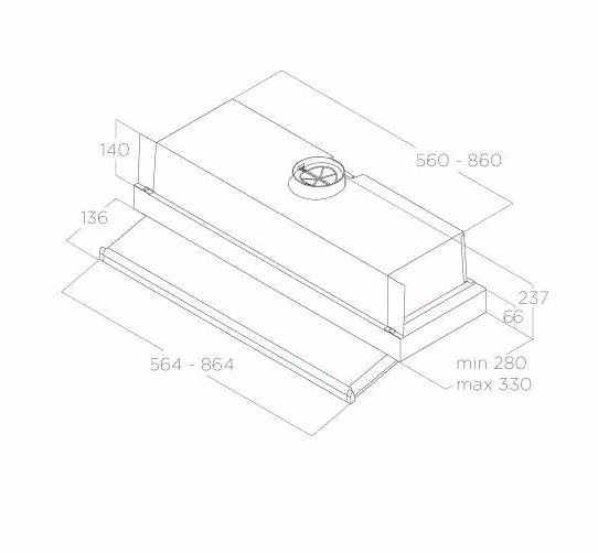 вытяжка встраиваемая в подвесной шкаф, 56 см, 550 м3/ч, серый