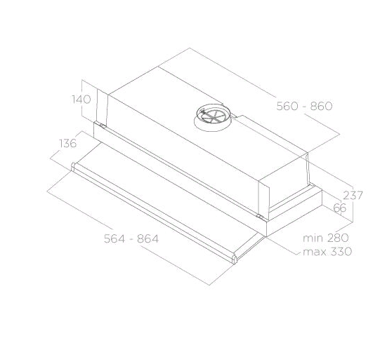вытяжка встраиваемая в подвесной шкаф, 56 см, 900 м3/ч, серый+стекло