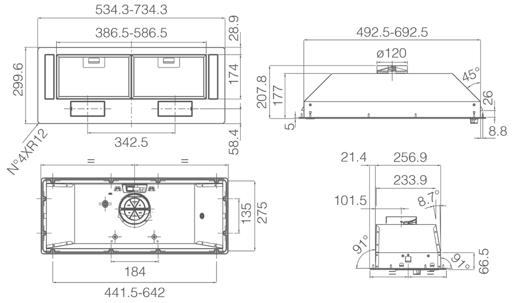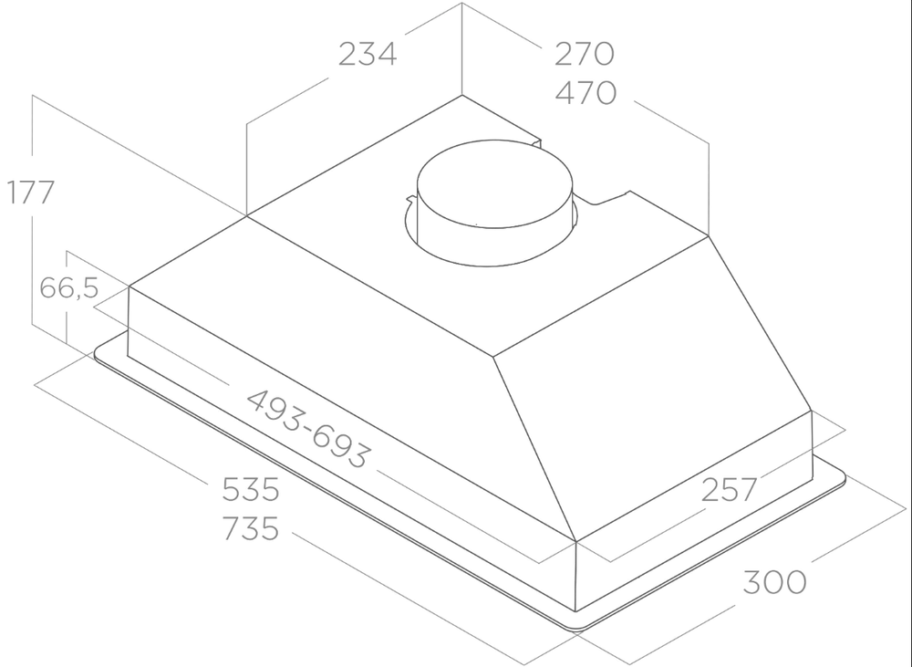 вытяжка встраиваемая в подвесной шкаф, 52 см, 850 м3/ч, черный