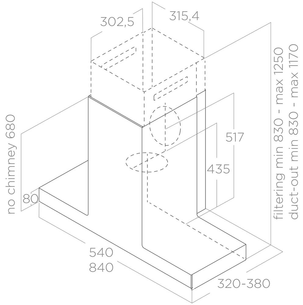 вытяжка пристенная, 84 см, 1300 м3/ч, черный матовый