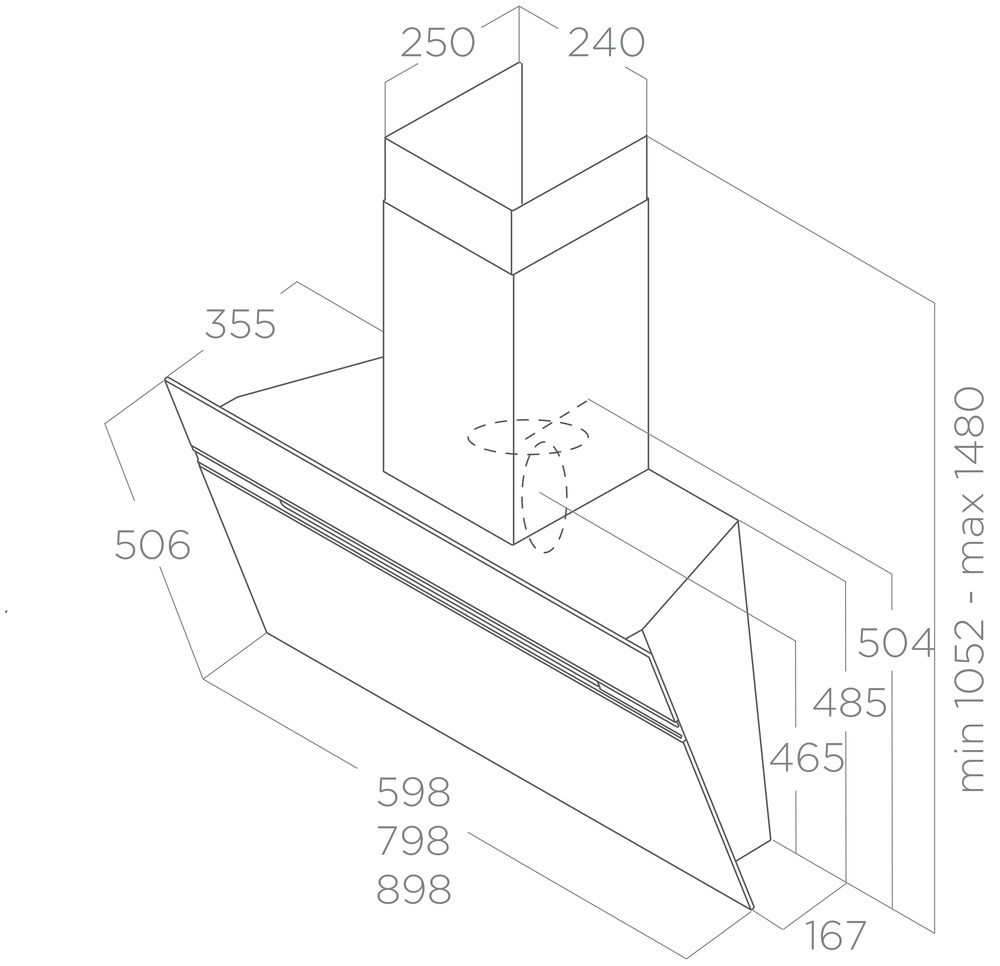 вытяжка наклонная, 60 см, 1300 м3/ч, черное стекло
