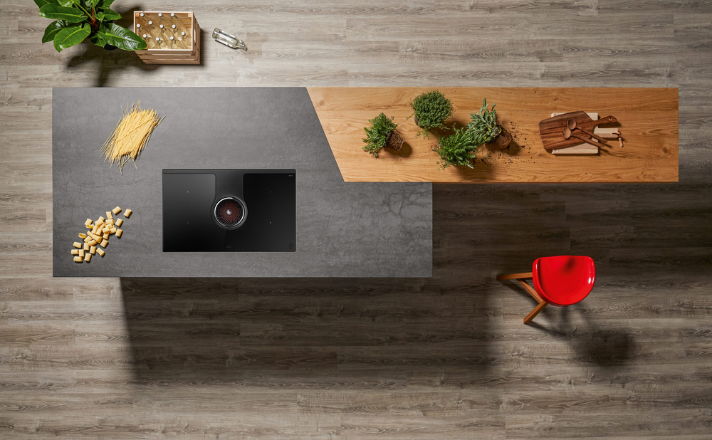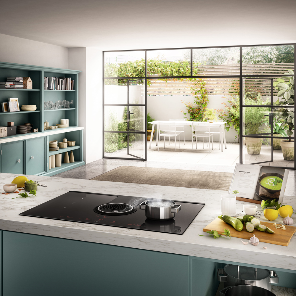 Модели со встроенной вытяжкой подходят для компактных кухонь. Запахи, пар и дым от готовки полностью поглощаются встроенной вытяжкой.